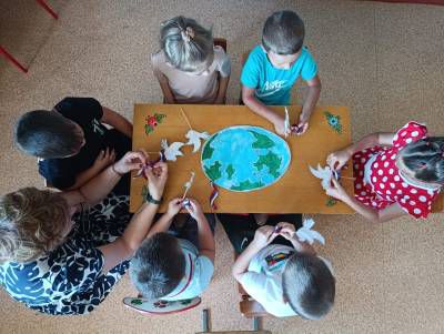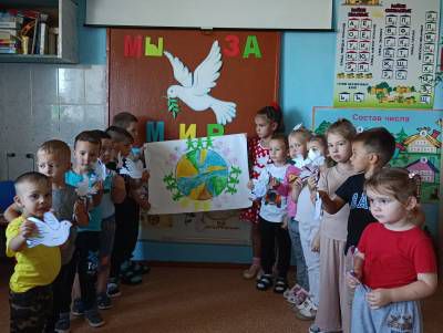 После каждый из детей сделал голубя - символ мира, света и борьбы с террором. Старшие ребята помогли малышам завязать на шпажках ленточки в цветах триколора.