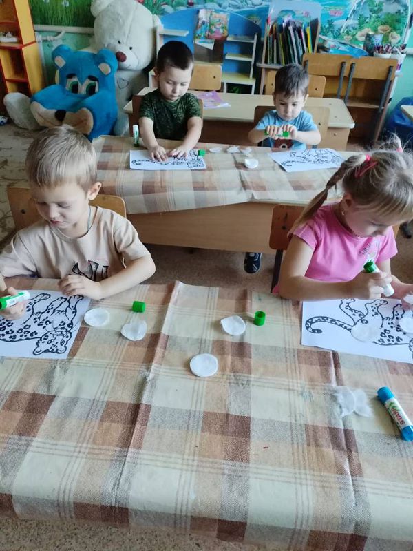 Сегодня в нашем детском саду прошла творческая аппликация, посвящённая Международному дню снежного барса.
