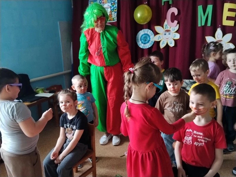 Сегодня в гости на праздник приходил клоун Бим. Бурю положительных эмоций доставил детям Бим. Вместе шутили, играли в весёлые игры "Пылесос", "Футбол", "Передай воздушный шарик", " Время обеда "," Эй, девчонки и мальчишки ". Дети с удовольствием отгадывали загадки - обманки. Звучали веселые песни, танцы. Клоун предлагал детям веселые эстафеты, шуточные номера, розыгрыши. Танцуя под весёлые песни , воспитанники получили заряд энергии. В праздник принято дарить подарки, но и здесь клоун подшутил над ребятами, предложив вместо конфет коробку с фантиками, но свои сладкие подарки ребята, конечно же получили.