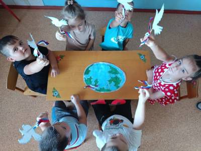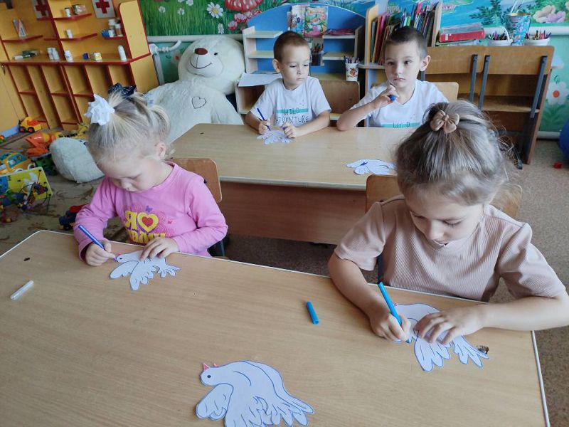 После каждый из детей сделал голубя - символ мира, света и борьбы с террором. Старшие ребята помогли малышам завязать на шпажках ленточки в цветах триколора.