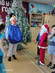 25 декабря в нашей группе прошло новогоднее представление «В гостях у Дедушки Мороза». Красиво украшенный зал, нарядная елка, подарки, Дед Мороз и Снегурочка, Снеговик ожидали ребят на празднике.