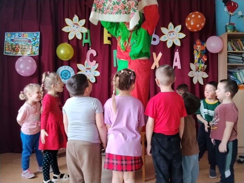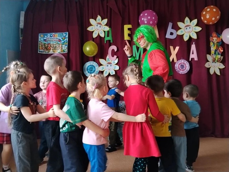 Сегодня в гости на праздник приходил клоун Бим. Бурю положительных эмоций доставил детям Бим. Вместе шутили, играли в весёлые игры "Пылесос", "Футбол", "Передай воздушный шарик", " Время обеда "," Эй, девчонки и мальчишки ". Дети с удовольствием отгадывали загадки - обманки. Звучали веселые песни, танцы. Клоун предлагал детям веселые эстафеты, шуточные номера, розыгрыши. Танцуя под весёлые песни , воспитанники получили заряд энергии. В праздник принято дарить подарки, но и здесь клоун подшутил над ребятами, предложив вместо конфет коробку с фантиками, но свои сладкие подарки ребята, конечно же получили.